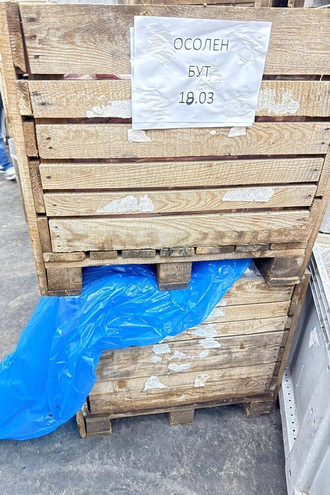 В друг склад са установени над 3 тона осолена сланина, за които не може да се докаже спазване на технологичния процес на обработка, както и 1 тон осолено месо, съхранявано в дървени съдове, които не позволяват ефективно почистване и дезинфекция.