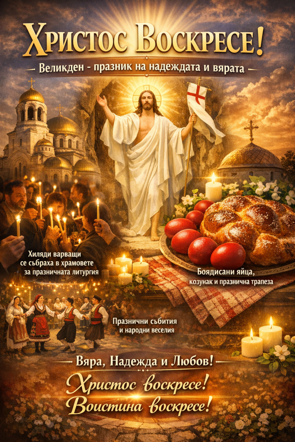 Днес християнският свят отбелязва един от най-светлите и значими празници – Великден. С тържествени богослужения, камбанен звън и радостни възгласи „Христос воскресе!“ вярващите празнуват Възкресението на Иисус Христос – символ на победата на живота над смъртта и на надеждата над страданието.