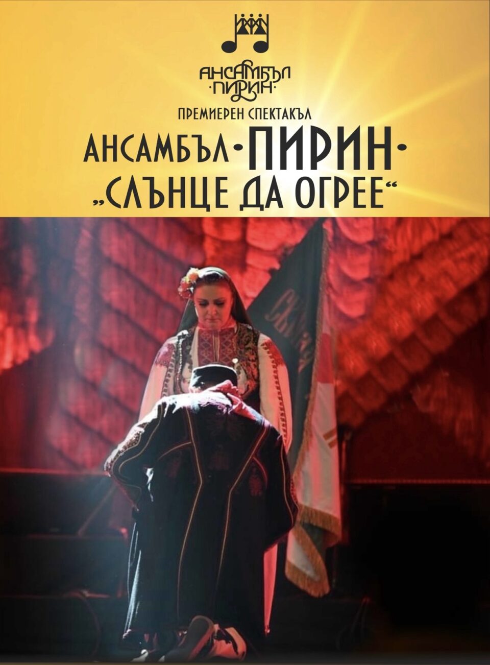 Ансамбъл „Пирин“ ще представи премиерно предколедния спектакъл „Слънце да огрее“ в две поредни вечери в зала „Пейо Яворов“ в Благоевград. Концертът, който ще бъде поставен на 16 и 17 декември, съчетава елементи от традиционния български фолклор със съвременни сценични решения.