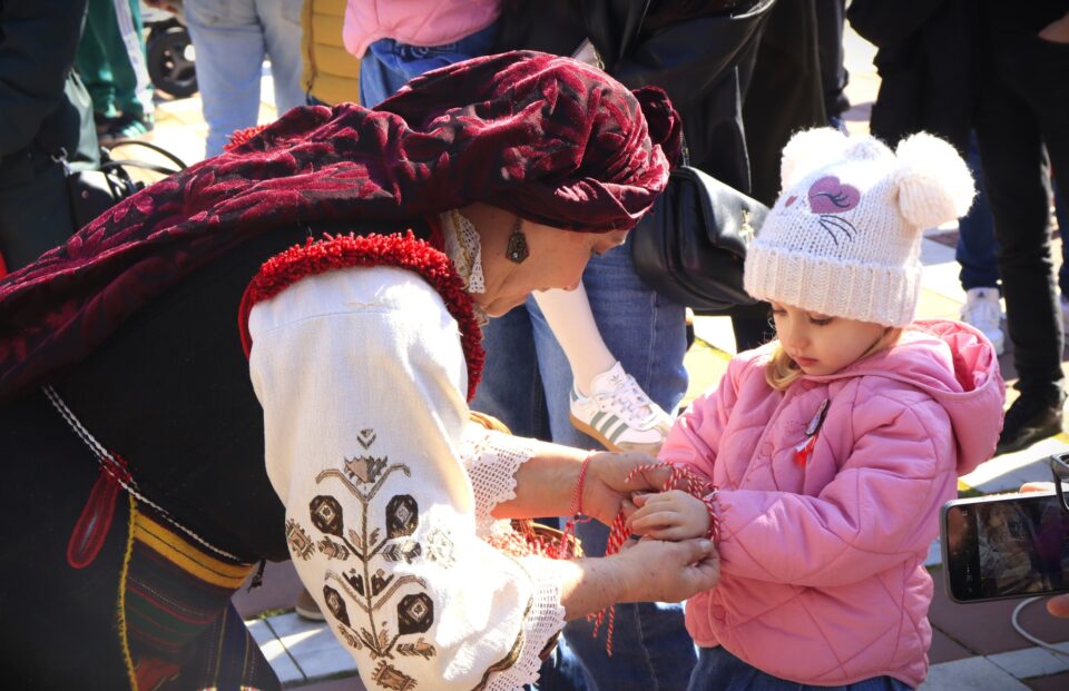 С пожелания за здраве и мир към всички жители и гости на община Благоевград Баба Марта пристигна днес в областния център. От сцената на площад „Георги Измирлиев“ тя припомни древните български традиции, свързани със символа на мартеницата, и върза на присъстващите мартеници от обагрени в бяло и червено конци.