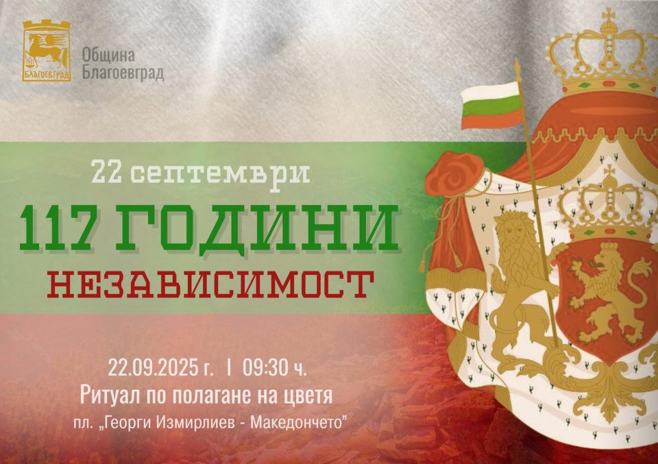 С полагане на цветя в Благоевград тържествено ще бъдат отбелязани 117 години от обявяването на Независимостта на България.