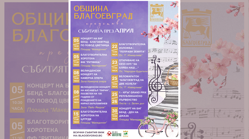 Освен с празнична великденска украса, през април жителите и гостите на Благоевград ще могат да се насладят на множество събития за всяка възраст и интерес.