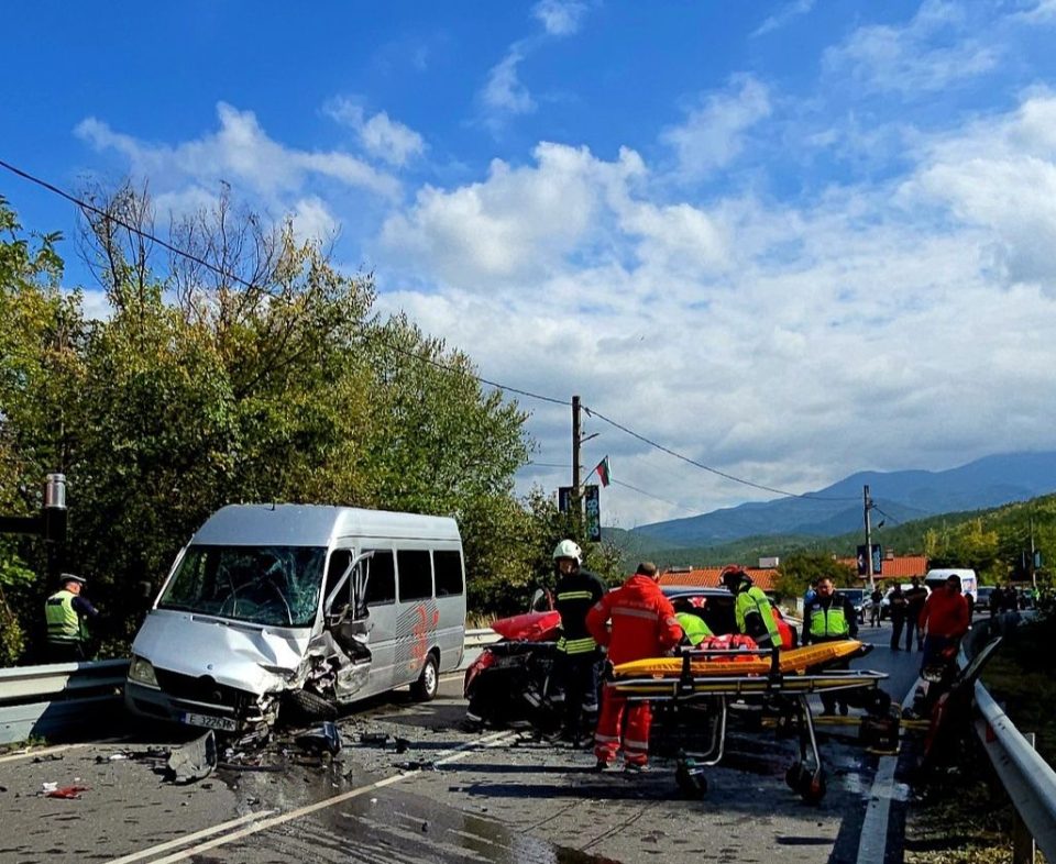 Около 12:00 часа днес на пътя между гр. Симитли и местността „Предел“ е станало ПТП между лек автомобил и микробус. По първоначална информация, жена е с оплаквания от болки в краката.
