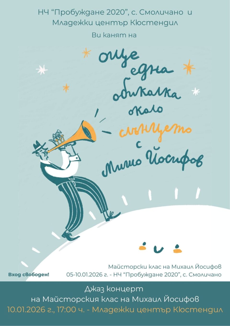 Не пропускайте да се насладите на невероятната музика на младите изпълнители на 10 януари 2026г. от 17:00 часа, в Младежки център-Кюстендил.