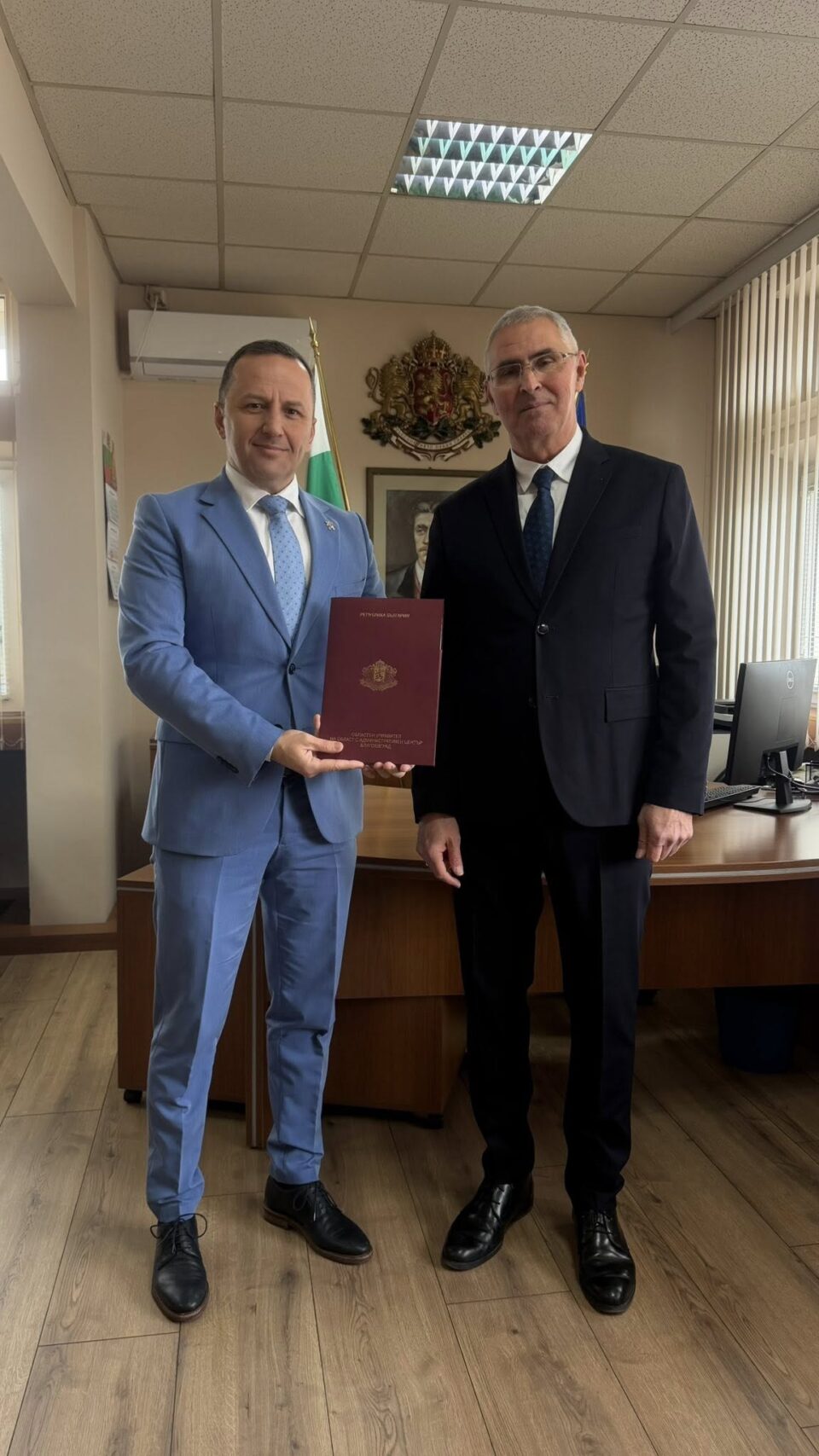 Днес в сградата на Областна администрация Благоевград, се състоя официалната церемония по встъпване в длъжност. Досегашният областен управител Георги Динев посрещна Николай Куколев и символично предаде властта и Решението на Министерския съвет.