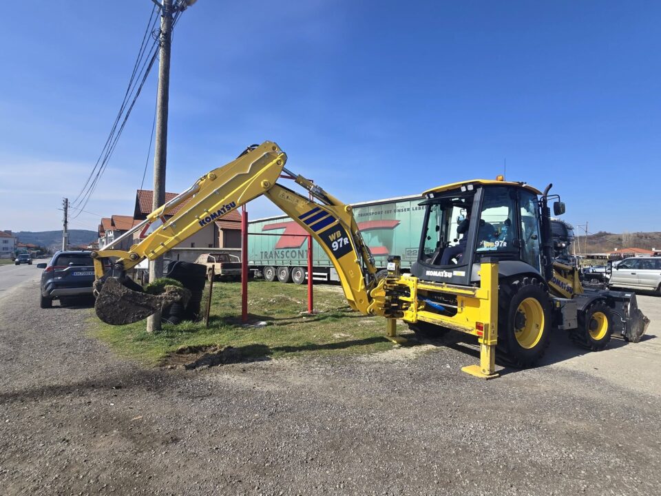 Кметът на Община Дупница Първан Дангов разби бутилка с шампанско в багера, който направи първата копка, за да върви всичко благополучно.