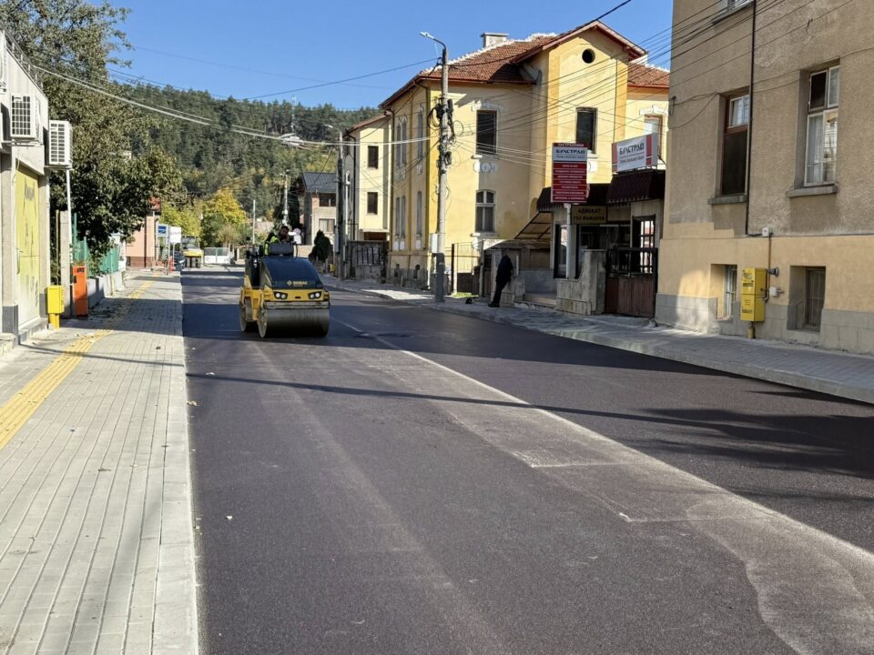 В рамките на благоприятните метеорологични условия стартира полагането на последния износващ пласт асфалт в централната градска част. В рамките на проекта бяха обновени и тротоарите, осигурявайки по-безопасна и удобна пешеходна среда.
