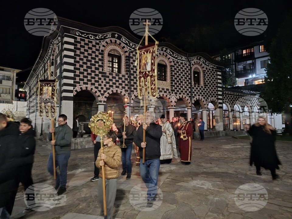 Храмът „Въведение Богородично“ в Благоевград се препълни от вярващи християни, дошли да посрещнат чудото на Христовото Възкресение в църквата.