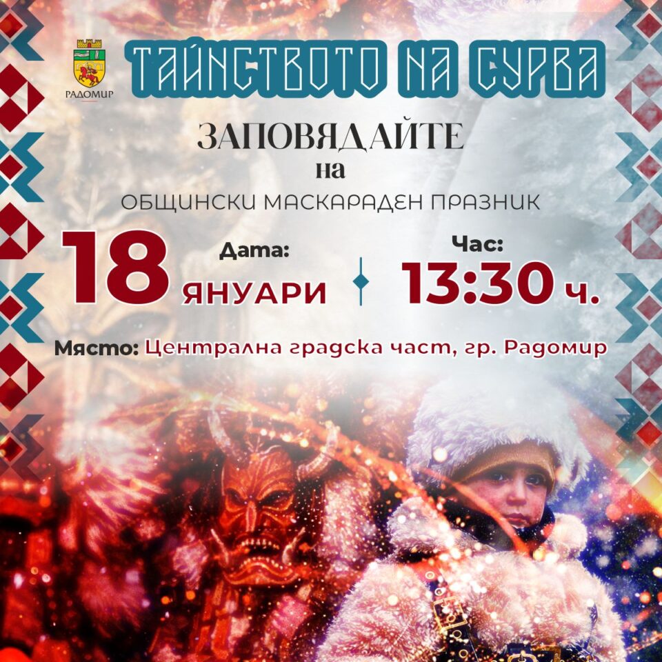 По повод Общинския сурвакарски празник „Тайнството на Сурва“, който ще се проведе на 18 януари 2026 г., със заповед на кмета на Община Радомир се въвежда временна организация на движението в централната част на града.