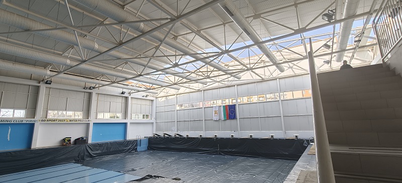 Започна планираният ремонт на закрития плувен басейн в кв. „Еленово“ в Благоевград. Към момента се обновява покрива на спортното съоръжение, след което ще продължи изпълнението на всички дейности по въвеждане на енергийна ефективност на сградата.
