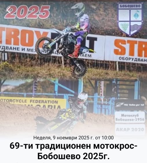 За 69-ти пореден път Бобошево ще бъде домакин на легендарния носител на награда „Гинес“ традиционен мотокрос, с който по традиция се закрива мотосезонът у нас.