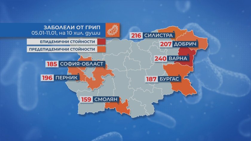 Във Варна вече е обявена грипна епидемия от утре, а други области са в предепидемична обстановка. Най-повишена е заболеваемостта в Бургас, Добрич и Силистра. Заради това здравният министър в оставка се срещна с директорите на регионалните здравни инспектори, предаде БНТ.